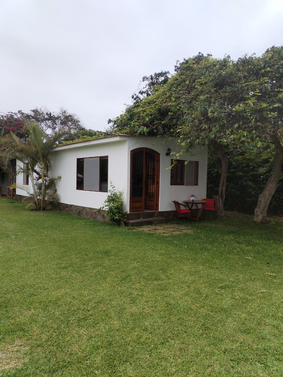 Casa de madera de dos pisos, cuyo diseño lo hizo el arquitecto Roberto Riofrio. Cuenta con 3 dormitorios, cada uno con baño completo, baño de visita, sala, comedor, cocina completa y terraza, además de piscina, jardín, parrilla e internet por WiFi. El área total de la propiedad es de 3,600 mt2, cuenta con más de 300 paltos Hass, plantas de granadilla, maracuya, granada, limón, aguamaynto y demás.