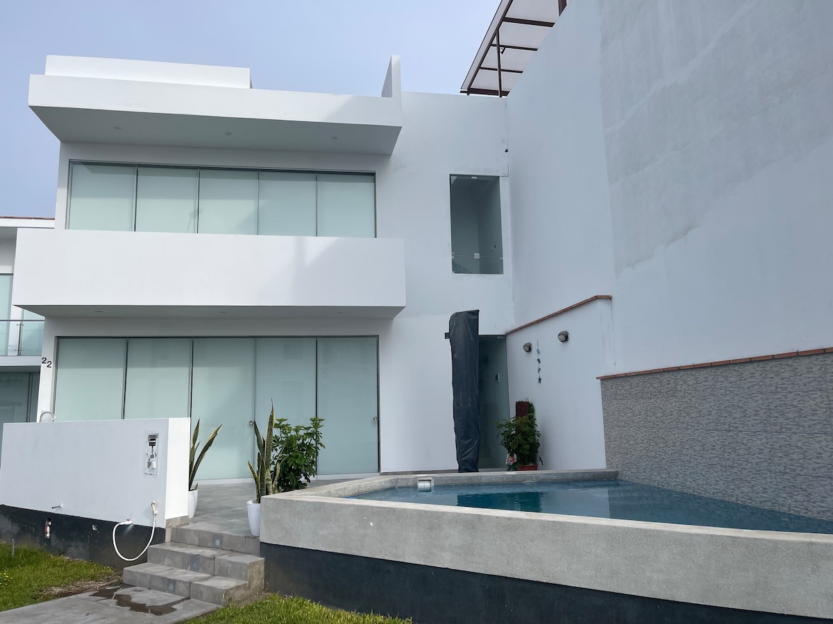 Casa amplia con piscina patera privada, ideal para relajarse en familia con privacidad al no estar en condominio☀️. La playa Los Farallones está a solo 400 (puedes llegar en auto), 300mts más allá (caminando) se encuentra la playa La Venturosa donde hay sombrilla instalada⛱️ 🌊 ✅ Amoblada y equipada ✅ 3 dormitorios, 4 baños ✅ Terraza, parrilla,piscina patera ✅ Frigobar en el tercer piso Ubicada a 1 cuadra de Los Farallones y 2 del Real Club. Perfecta para grupo familiar de 7 personas