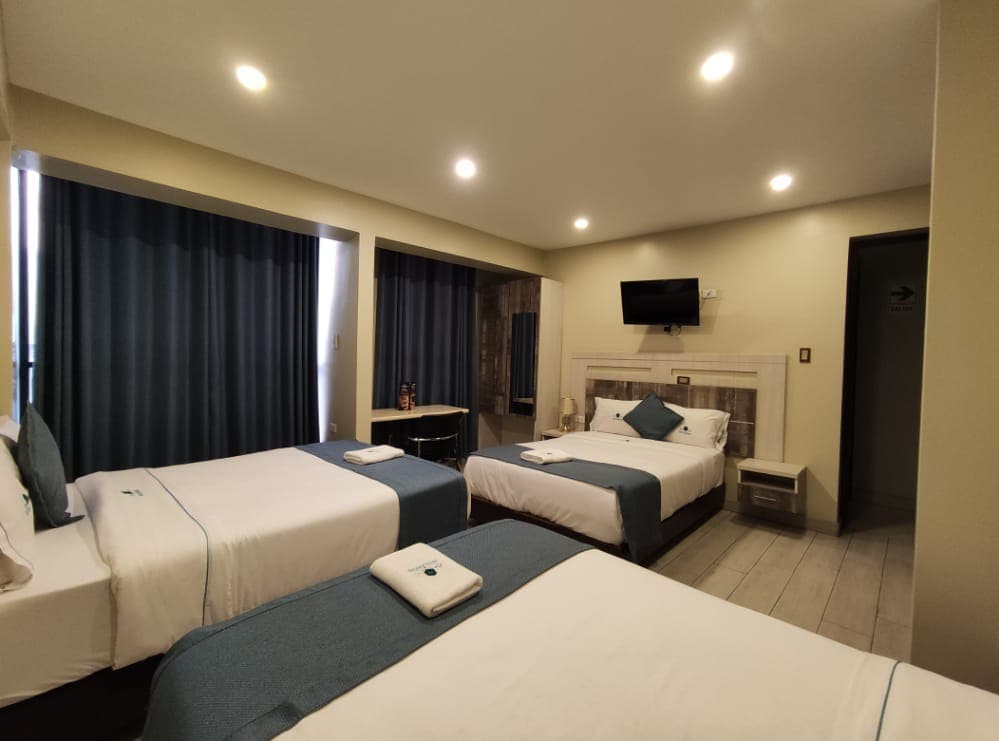 Disfruta de una estadía única en nuestra Suite Estándar, diseñada para tu descanso. Aquí tendrás todo lo que necesitas: ✔ Agua caliente y toallas suaves ✔ TV y WiFi de alta velocidad ✔ Secadora de cabello y frigobar ✔ Atención cálida y personalizada ✔ Estancia extendida (+30 horas) *Este tipo de suite tiene vista interna Regálate la experiencia que mereces✨
