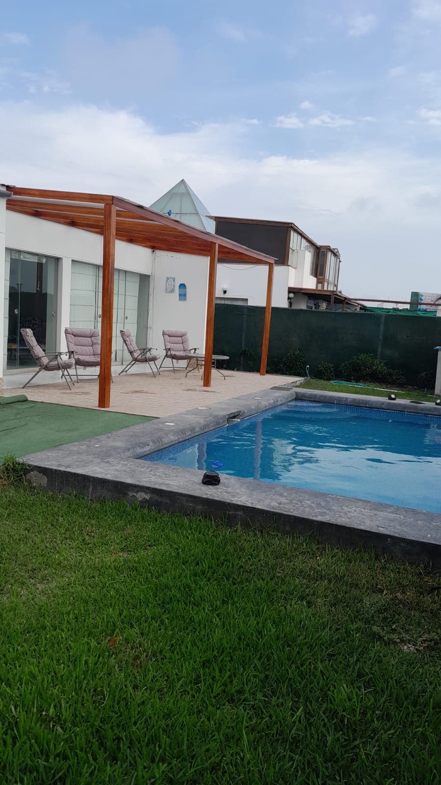 Hermosa casa de playa en el km 84.4 de la panamericana sur a 10 minutos del Bulevar de asia cerca de la ciudad de mala el condominio tiene seguridad las 24 horas con una laguna espectacular con botes a pedal para ademas de canchas de tenis y fronton zona de esparcimiento y la casa tiene piscina y esta en un terreno de 600 metros con 210 metros construidos con 5 dormitorios con baños privados con capacidad para 15 personas ademas del area de servicio con Baño y lavanderia tiene 2 sistemas wifi