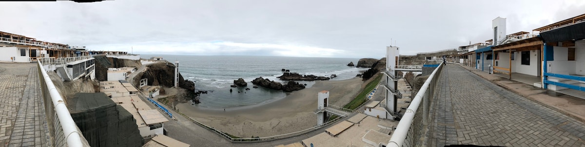 If you like sophisticated and modern environments this beach house will make you live moments to remember, has direct access to the beach, just 45 min from Lima, at km 71 of the Panamericana Sur, with large terrace equipped with an Argentine type grill for your best barbecue evenings, we provide, wifi, bed linen, kitchenware, laundry, appliances, ventilated and illuminated environments, access to club house with games room, large swimming pools and sports courts.