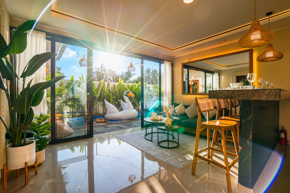 Our villa Anua needs just one word: THE BEST LOCATION! FLOODS SAFE villa - Only 9min WALK to ATLAS & FINNS BEACH CLUB - 1 min walk to Starbucks - 1 min walk to Margaret bistro - 2 min walk to Nüde cafe - 1 min walk to Lusa by Suka - 2 min walk to Frestive market - 2 min walk to Gym Fortitude - Central location with shops around - Fully closed living room - 2 bedrooms - floating breakfast for extra fee - working desks - Wifi up to 100 Mbps - SMART TV - Free drinking water - car parking