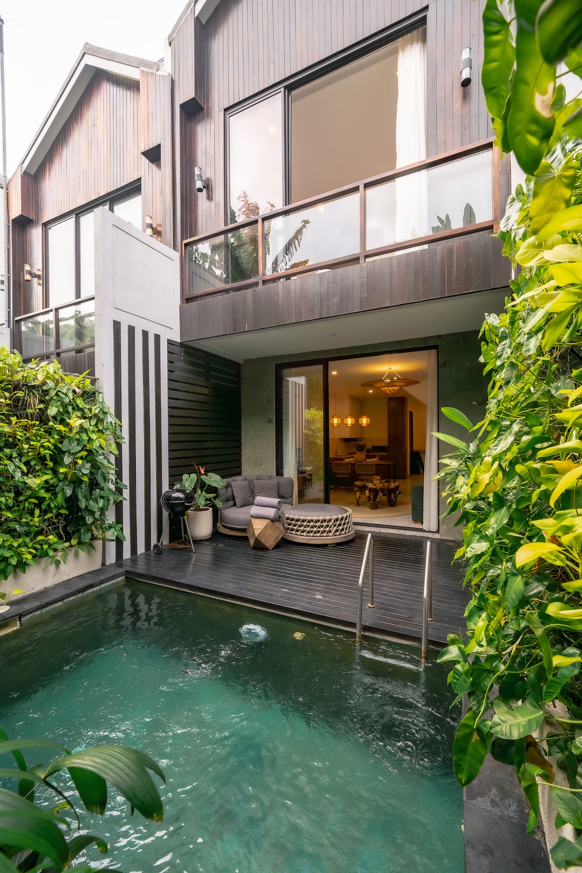 Modern Designer Villa in Canggu • 2 chic air-conditioned bedrooms with ensuite bathrooms • Bathrooms with walk-in showers, organic amenities & hairdryers • Private pool surrounded by a lush tropical garden • Elegant sunken living room with glass walls & custom interiors • Fully equipped modern kitchen & dining space • Wi-Fi 300 Mbps • Smart TV with Netflix, PS5 on request • Daily cleaning, fresh linens & towels • Baby cot & high chair on request • Concierge service for transport, tours & more