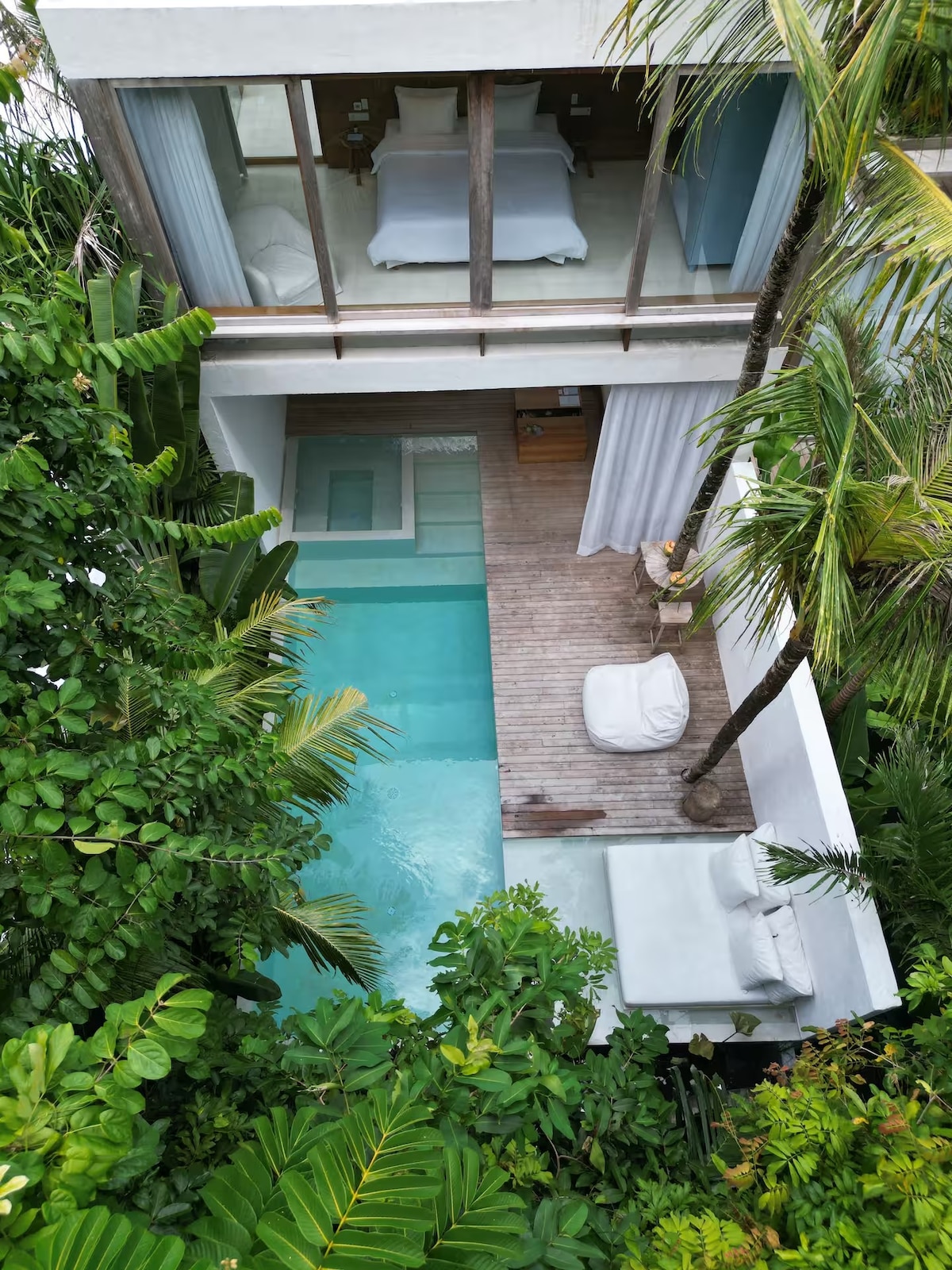 Our two-story residence captures the essence of serenity, featuring expansive living areas, spacious master suite with en-suite bathtub, bathroom and walk-in closet, fully equipped kitchen island, and private pool surrounded by a lush tropical oasis. We offer more than a stay; we create experiences. Enjoy a relaxing in-villa massage, or movie nights with a projector and popcorn. Each moment is curated to rejuvenate and inspire, creating a stay uniquely yours.