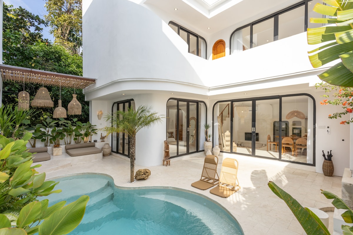 Inspiring soft & authentic aesthetic vibes for creative travellers. Triplex villa inspired by raw mediterranean design, in the lively residential Berawa area. - Rooftop with views of the balinese roof - Plunge pool - High speed wifi - Walk to cafes, restaurants, supermarket & local market - 2min drive to Canggu shortcut - 5min drive to Finns Beach Club & Atlas Beach club Our beautiful cat Coco lives in the villa. He is friendly and affectionate.