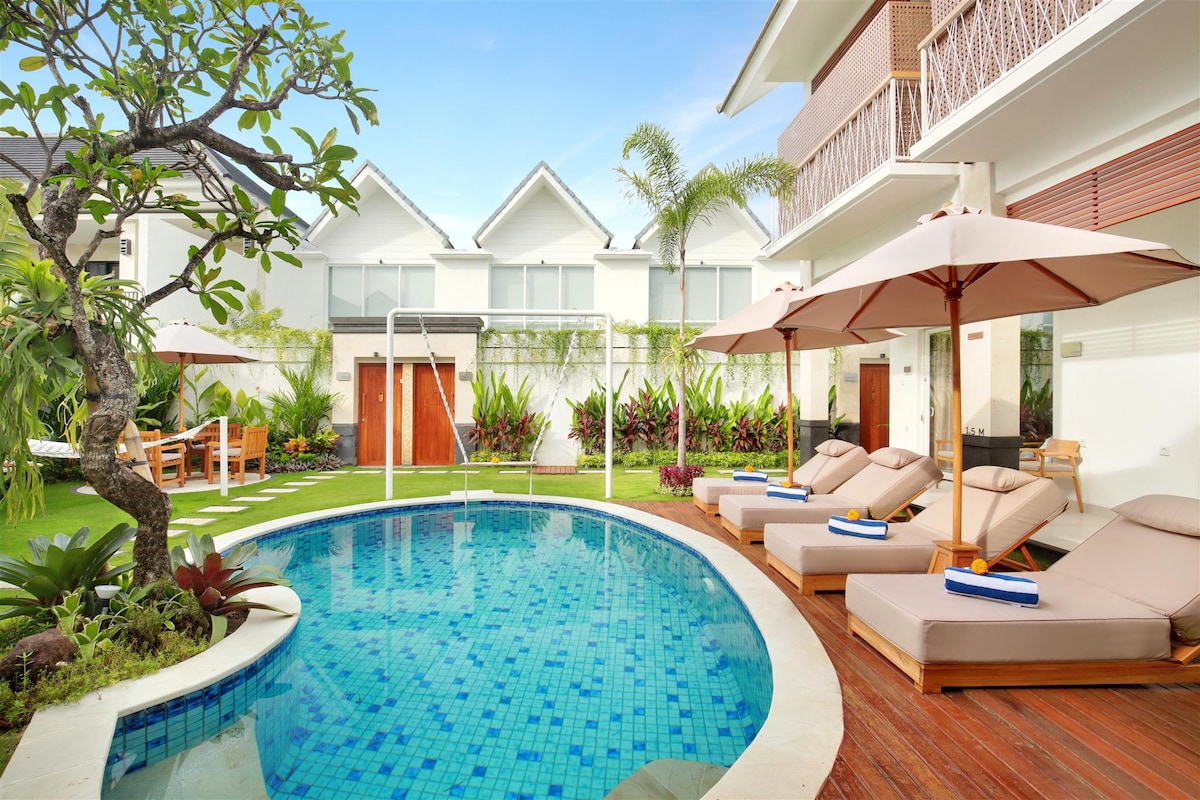 Located in Seminyak, 0.7 mi from Double Six Beach, this Resort provides accommodations with a restaurant, free private parking, a fitness center and a bar. This Resort provides accommodations with a restaurant, free private parking, a fitness center and a bar. Each accommodations at the 4-star hotel has pool views, and guests can enjoy access to a garden and to a terrace. The accommodations offers a 24-hour front desk, airport transfers, room service and free WiFi throughout the property.