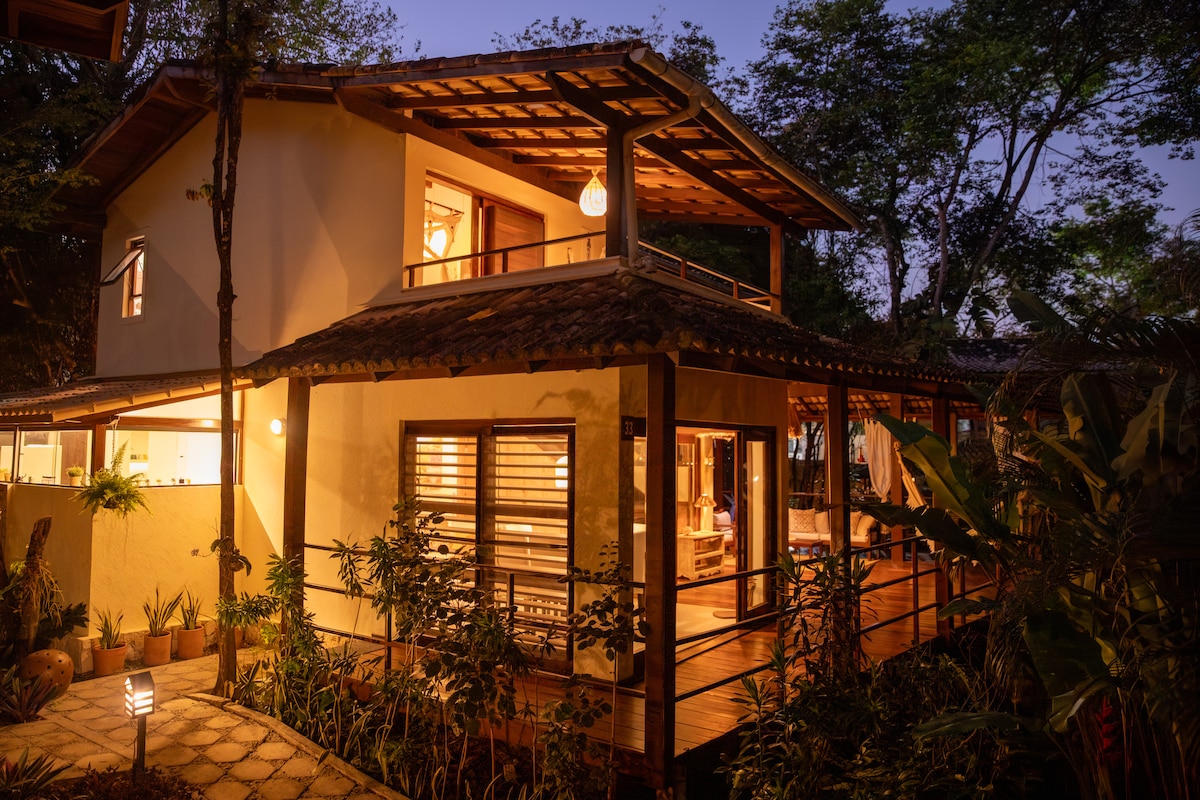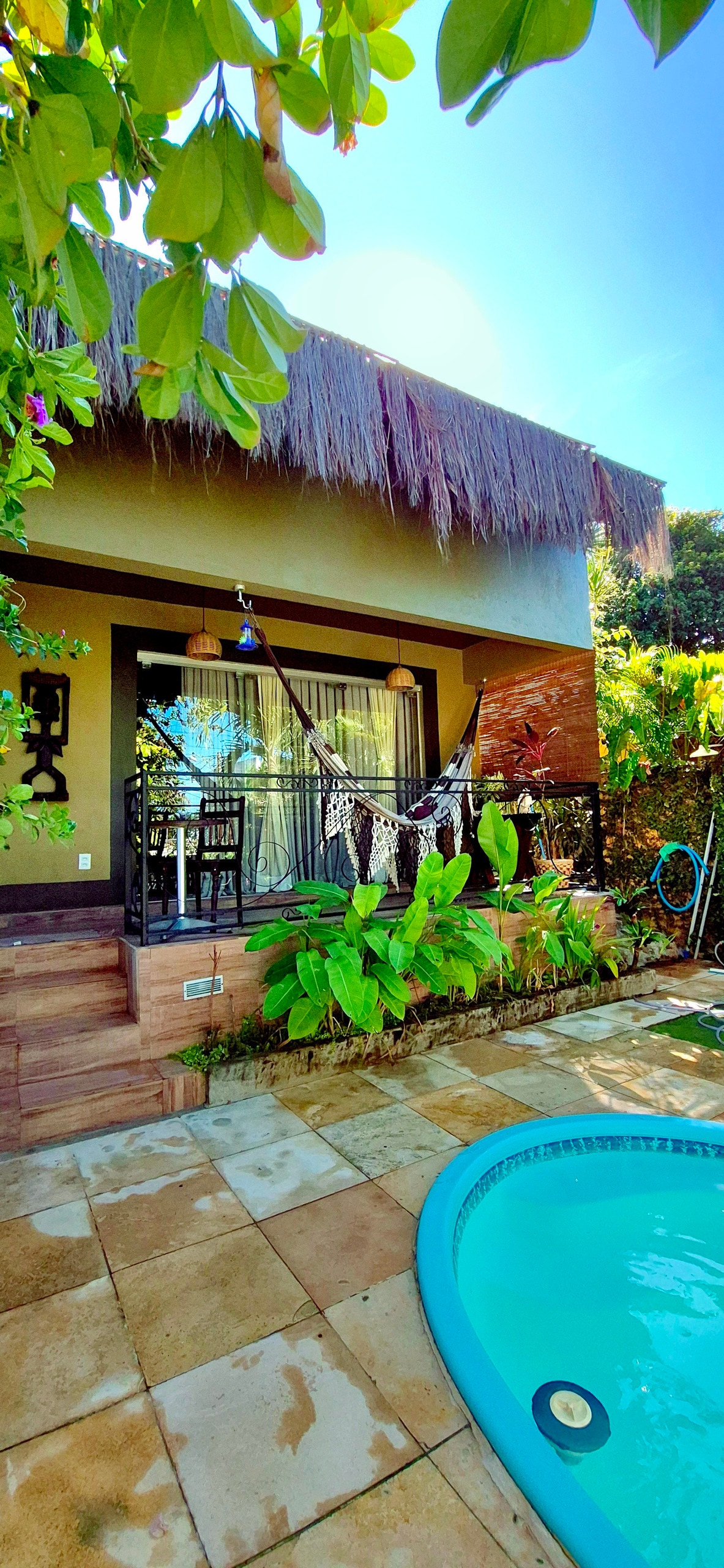 Lovely house in a small compound with a SHARED SWIMMING pool, surrounded by a lot of green, with native trees where visitors can appreciate a bit of the local wild life and see things such as beautiful tropical birds and small monkeys. The house is very well located being close to local shops, restaurants and bars and it is only 250 meters from the main beach. O aluguel mensal não inclui a eletricidade, que será cobrada separadamente.