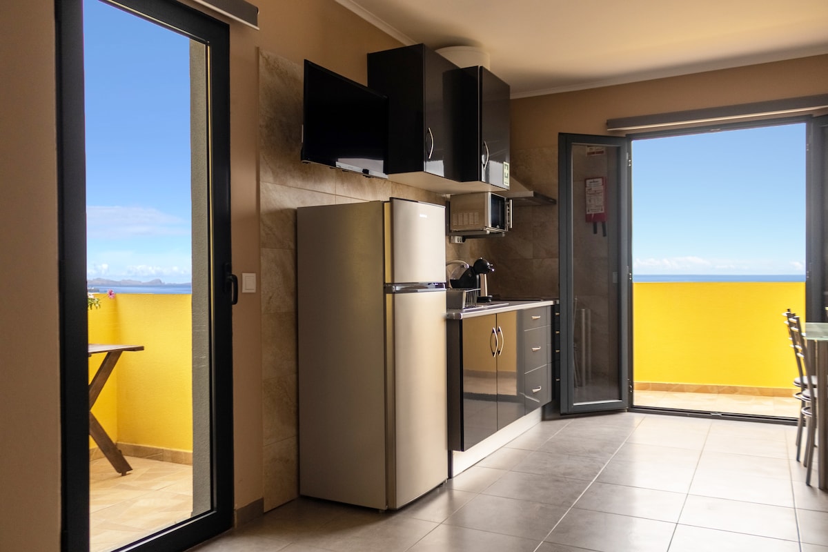 Modern studio in the sunny and serene coastal village of Jardim do Mar, south west of Madeira Island. Studio G features an open plan design with kitchenette, lounging area with TV (with Netflix), a cozy king sized bed, a spacious bathroom and a private balcony with ocean and pool view. We provide free Wi-Fi and free parking (the property is a minute walk from the village's centre and the main free parking lot).