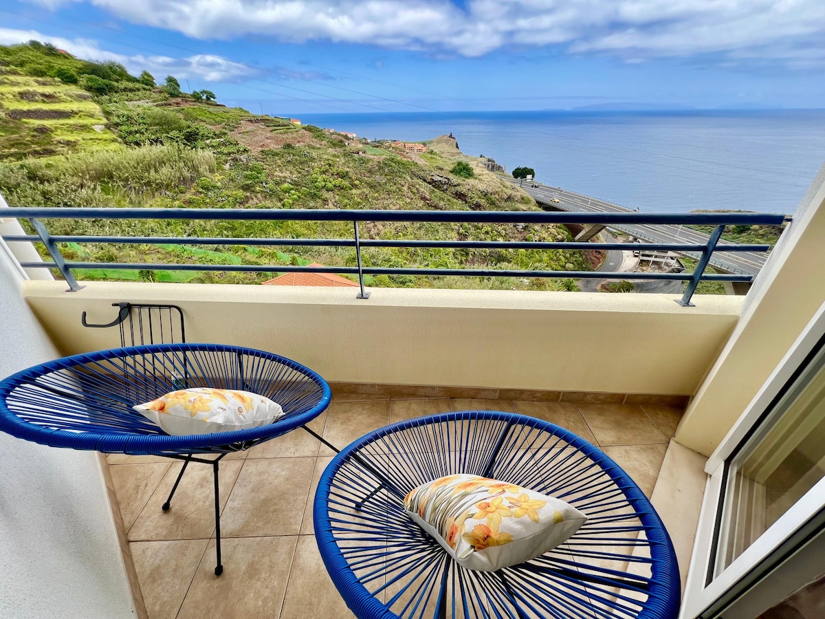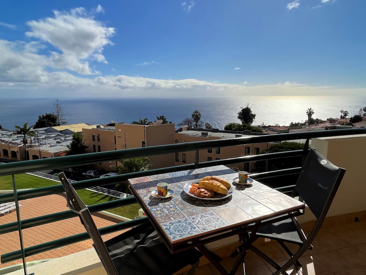 This apartment is located, on a hillside, in the high areas, east of Funchal. With the most enchanting panoramic view over the Atlantic Ocean, passing over Funchal, up to the mountains. Undoubtedly a privilege to see this wonderful landscape from the balcony of the apartment itself. Here I offer a quiet space providing moments of relaxation and well-being with the most unique sunsets ever seen.