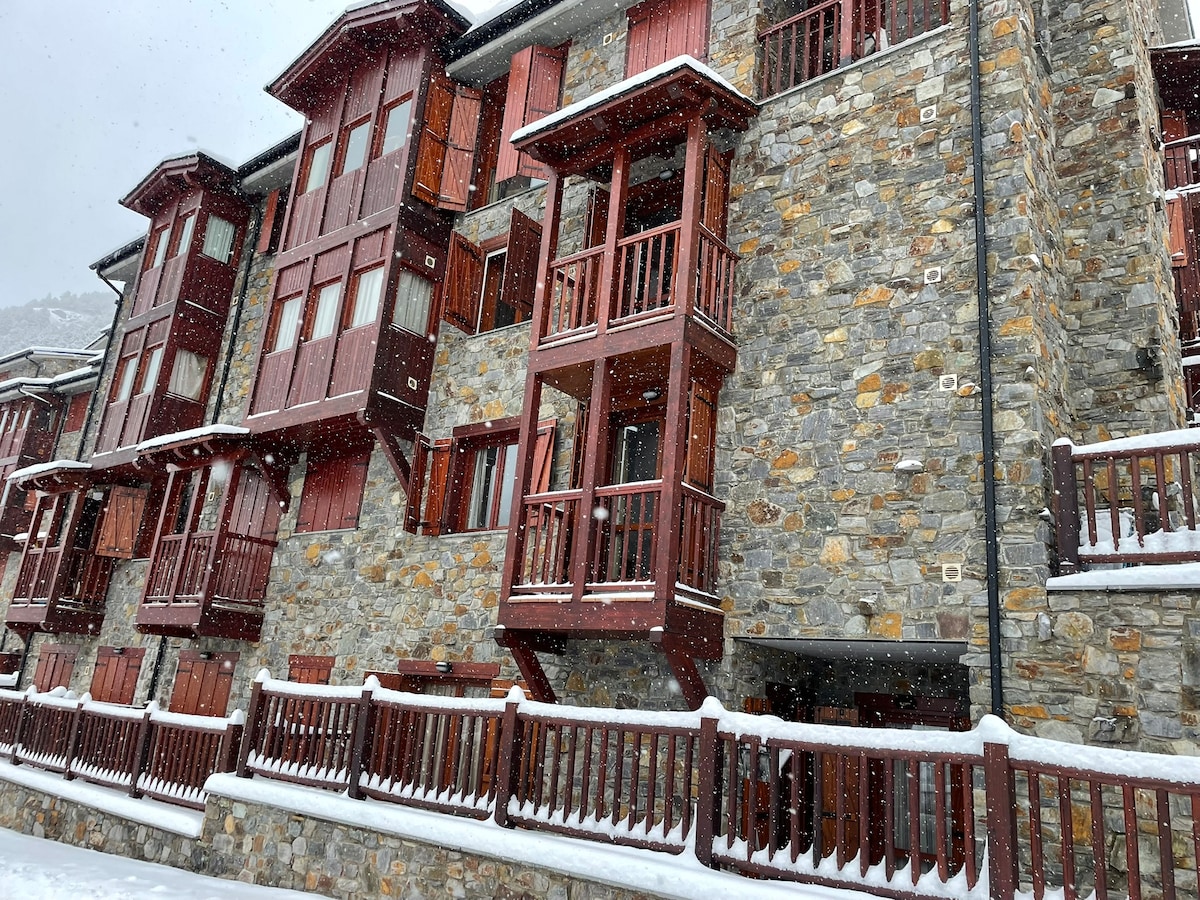 Este alojamiento único tiene personalidad propia. Apartamento para 6 personas. Con terraza. Situado a pie de pista de Sky. Con aparcamiento privado gratuito. Cuenta con todos los elementos para una estancia cómoda y hogareña. Tiene 3 habitaciones. Una de ellas equipada para teletrabajo. Cocina, baño, salón y terraza en la habitación principal. TV de 60 pulgadas, con diferentes plataformas de entretenimiento. Te sentirás como en una cabaña rodeado de naturaleza y nieve.