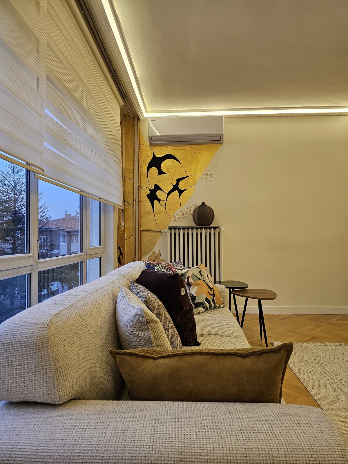 Stylish and cozy 3-bedroom + 1 living room apartment in the heart of Ankara! This peaceful city-center retreat offers a beautifully decorated living room, perfect for relaxing after exploring the vibrant surroundings. Just steps away from supermarkets, street shops, and the lively pulse of Ankara. Ideal for families or groups seeking comfort and convenience. Fully equipped kitchen for a comfortable stay with all essentials provided. 50 Mbps internet, Cable TV, Netflix.