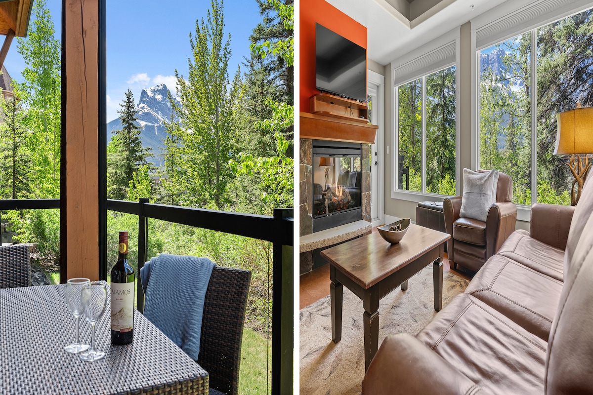 Welcome to the Canmore Mountain Hideaway. Relax in this cozy, newly renovated 1 bedroom condo featuring a King bed and sofabed. Located within walking distance to restaurants and local amenities. Walking and biking paths located right outside the door. Cozy up to the fireplace and enjoy the comfort of updated furniture and local artwork throughout the suite. Enjoy the majestic views of the Rocky Mountains from the private oversized covered patio, with BBQ and new patio furniture.
