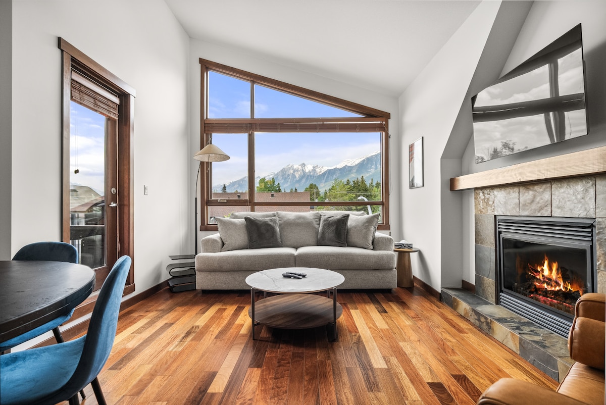 Hello Sunshine! Steps to Main St restaurants, pubs, cafes & shopping, and opposite Elevation Place recreation centre,, "Morningside" is your perfect vacation or weekend retreat. Bask in the Three Sisters sunrise views from the huge living room and patio, or admire local birdlife with a peaceful stroll along Policeman's Creek boardwalk (pet friendly unit, so take Fido with you!) Heated underground parking provided. There’s no better choice for your mountain stay than this lovely top floor condo!