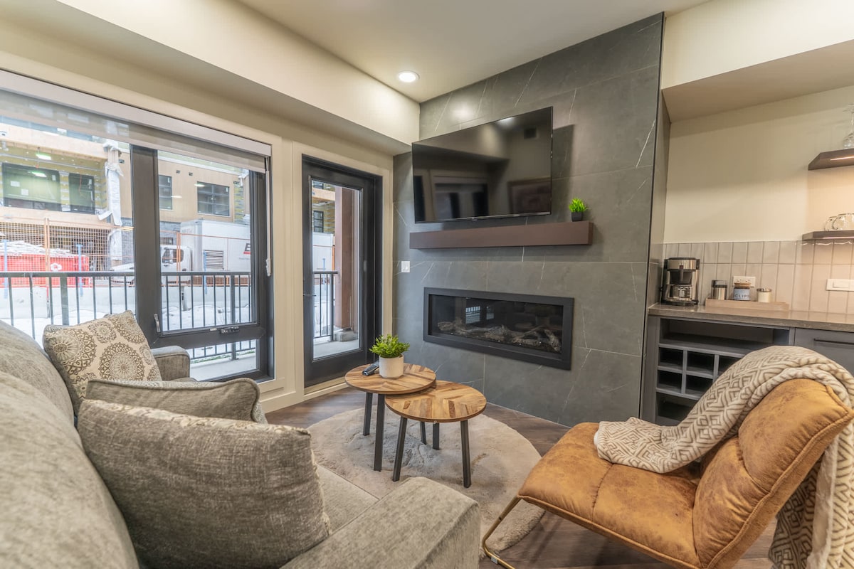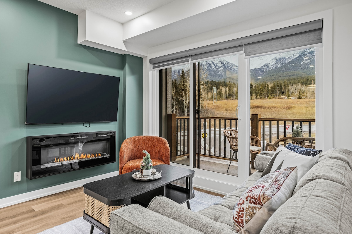 Welcome to this stunning, 1 bed 1 bath property, located in the heart of Canmore, Alberta. Surrounded by the best mountain views in Canmore, this property offers breathtaking views of the Three Sisters, Mount Lawrence Grassi, and the whole Rundle mountain chain. After a long day, come home to soak in one of the outdoor hot tubs, relax in front of the electric fireplace or sit on our sunny balcony and enjoy the view.