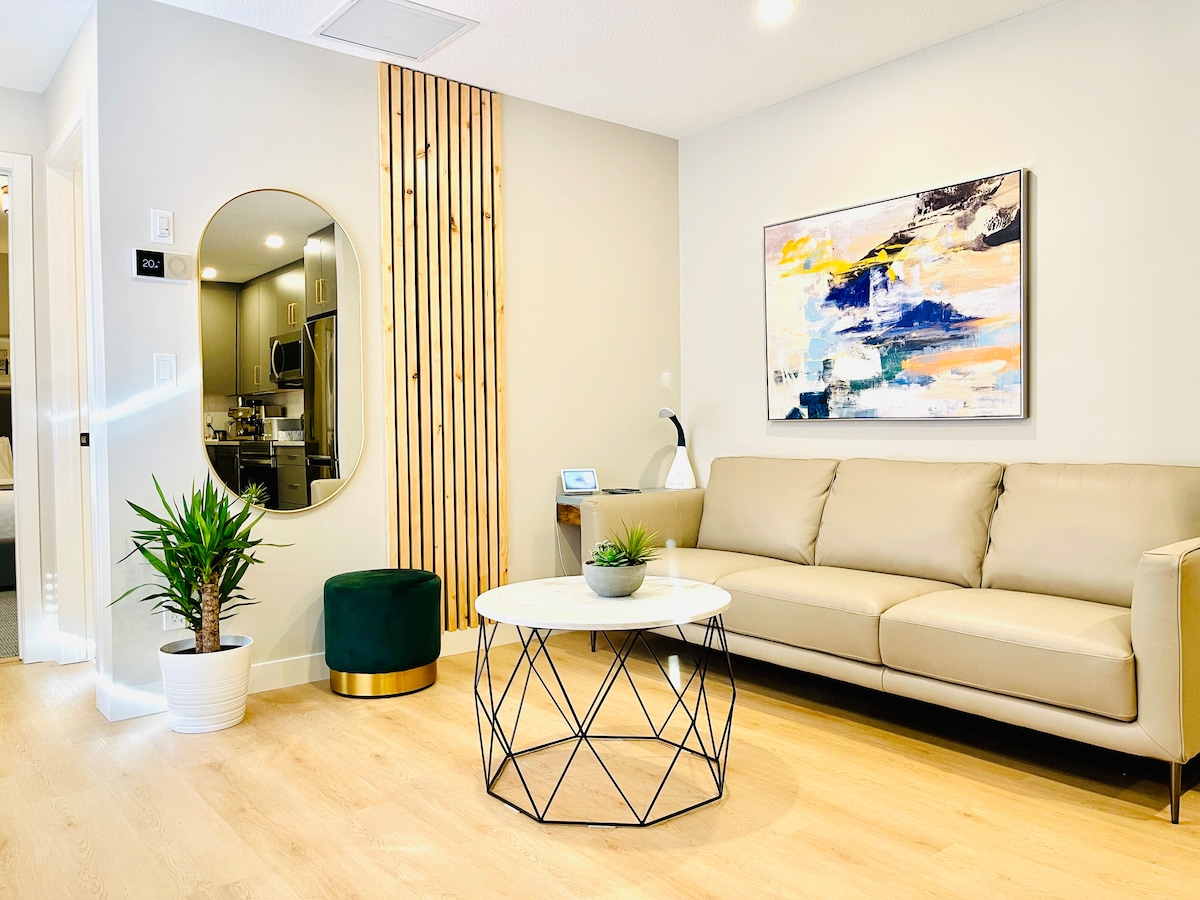 Nestled in the heart of Spring Creek Mountain Village, Canmore's premier luxury resort, this one-bedroom condo is a perfect escape to soaking in the beauty of Rockies. The bed room features a comfortable king bed. In the living room there is a high quality sofa bed to accommodate extra guests. The fireplace provides a cozy ambience. Free Wi-Fi and smart TV with Amazon Prime Video & TELUS TV for your leisure. Fully equipped kitchen and rain shower can make you feel just at home!
