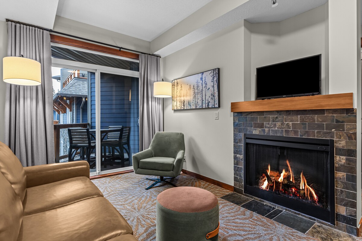 This updated suite has everything you need for a perfect vacation. Cook in the fully stocked kitchen, relax on the pull-out couch by the fireplace, and enjoy pool/mountain views from the patio. Features a king bedroom with patio access, full bath, and in-suite laundry. Amenities: heated outdoor pool, 2 hot tubs, fitness room, spa, EV chargers, underground parking with car wash, and BBQ courtyard. Pricing is set - No discounts