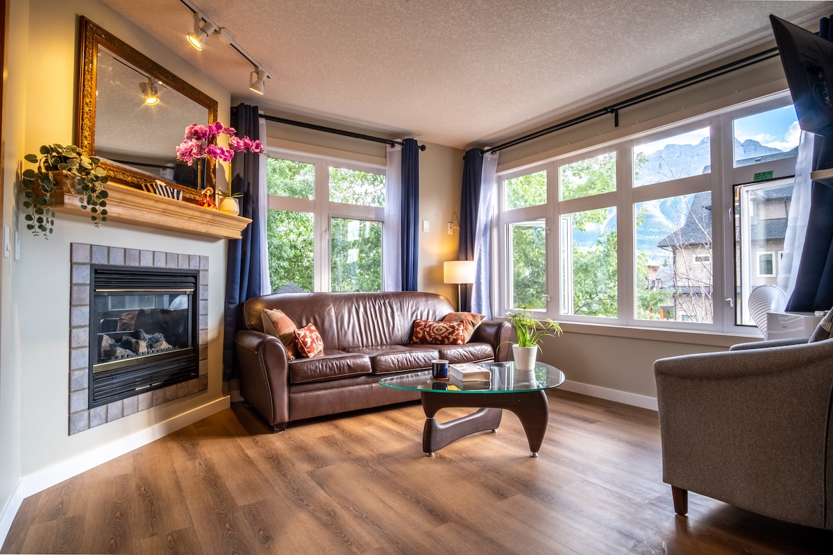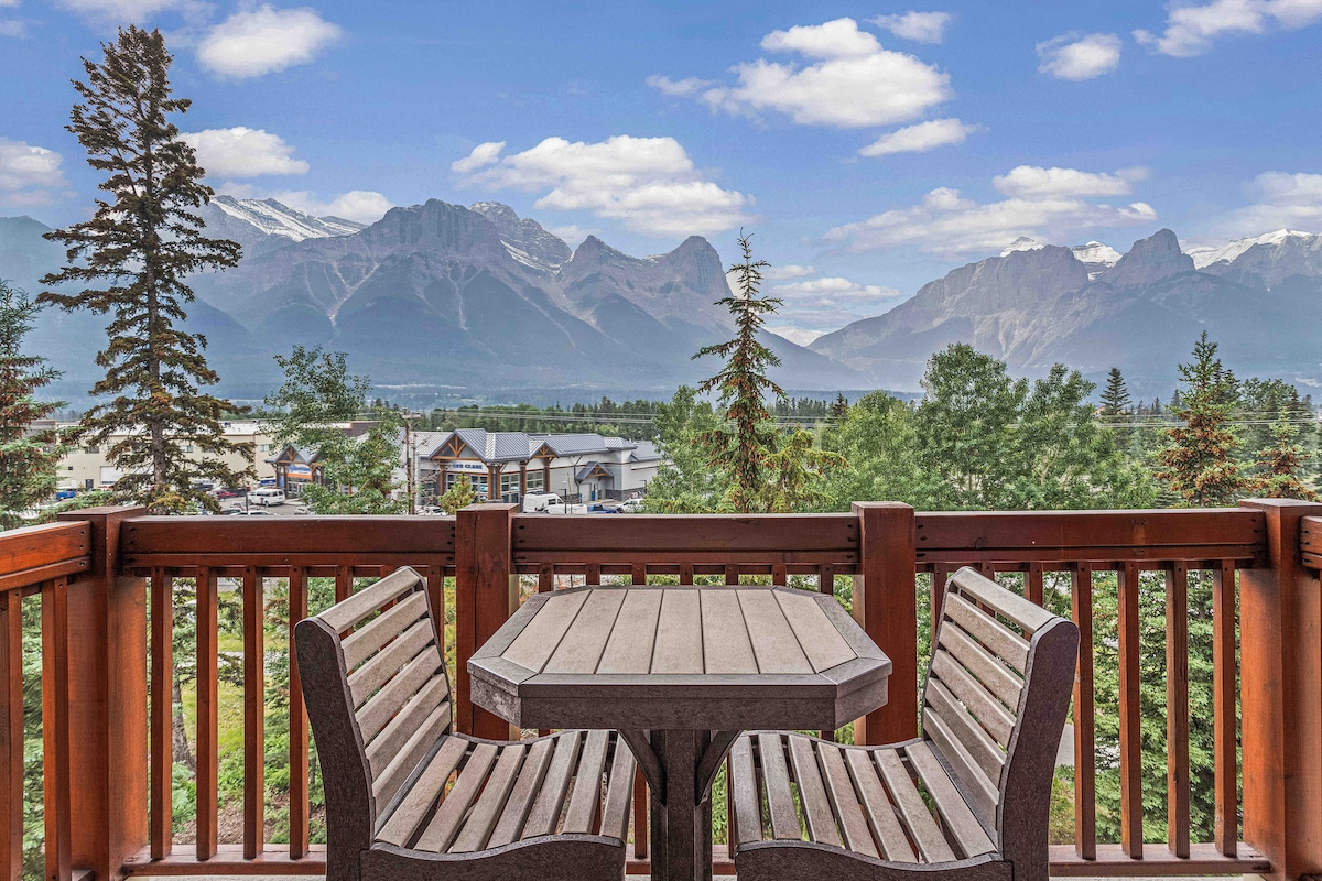 PANORAMIC MOUNTAIN VIEWS, 2 OUTDOOR HOT TUBS, SAUNA, AND NATION PARK PASS INCLUDED Relax on the patio and soak in the most amazing views in Canmore! The Three Sisters, Mount Rundle, and Ha-Ling Peak are right outside your door. In fact, every window has a stunning postcard view! Our condo has everything you need to enjoy a stress-free visit in the Rocky Mountains; Whether you are on holiday with your family, on a romantic getaway, or working remotely!