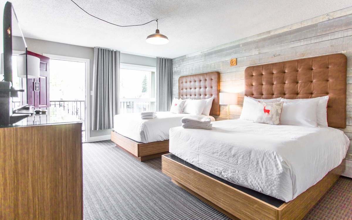 Experience unparalleled comfort and convenience with our thoughtfully designed Dog Friendly King Rooms, perfect for couples or solo travelers. Each room features a plush king bed with premium linens and ample space for your gear. Choose between breathtaking mountain views. Enjoy amenities like air conditioning, high-speed WiFi, and cable TV. One free parking spot included, with additional paid parking nearby.