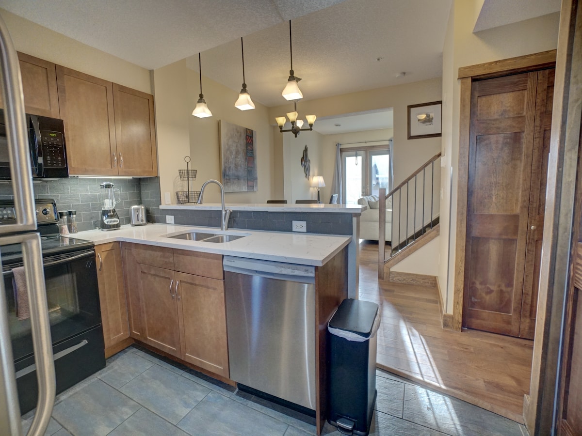 Cute as a button condo in the most amazing downtown location! • Main St Canmore restaurants, cafes, shopping, right outside your door • Policeman’s Creek boardwalk just outside, for a gorgeous morning stroll • Across the road from Elevation Place – pool and rock-climbing wall • Fully equipped kitchen including complimentary local Eclipse coffee • High speed internet • Disney, Prime, Netflix & Sportsnet provided