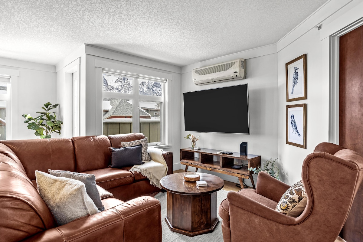 Welcome to the Canmore Mountain Hideaway. Relax in this cozy, newly renovated 1 bedroom condo featuring a King bed and sofabed. Located within walking distance to restaurants and local amenities. Walking and biking paths located right outside the door. Cozy up to the fireplace and enjoy the comfort of updated furniture and local artwork throughout the suite. Enjoy the majestic views of the Rocky Mountains from the private oversized covered patio, with BBQ and new patio furniture.