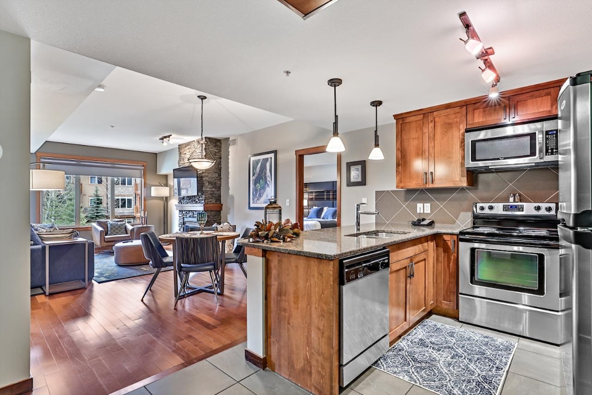 Our condo with a walk-out patio is located in one of Canmore's top resorts. We have access to the resorts year-round heated pool, hot tub & fitness centre. We provide a fully appointed kitchen so you have everything you need to cook all your meals from home. With a brand-new king -sized mattress, you will get the beauty rest you deserve. We are a 15minute walk to beautiful downtown Canmore via Spring Creek, don’t forget to grab a coffee at the Black Dog Café to start your adventure off right!