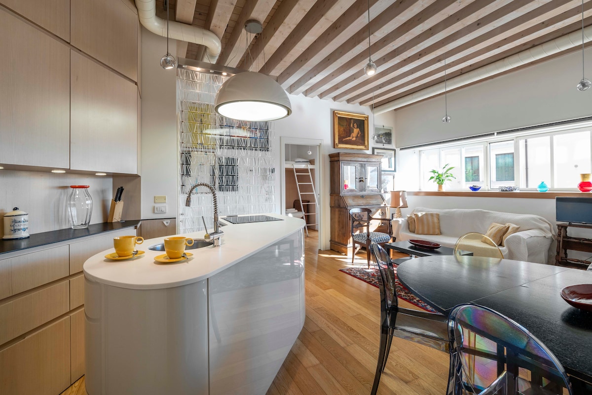 Cozy up with a book, have breakfast and dinner while admiring the incredible view of the bell towers and canals of Venice, live like a true Venetian in the most typical district of Venice a few steps from the Rialto bridge, Ca' D'oro and San Marco in a apartment finished with furniture and ornaments made by Venetian and Murano artisans. You will feel like you are experiencing the fantastic atmosphere of the 1800s but with all the comforts of a modern apartment. Don't miss this amazing experience