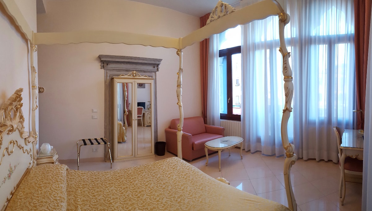 Nice and cosy double room in our boutique style hotel, with complimentary breakfast, kettle, Wi.Fi, safe, ensuite bathroom, A/C or heating, according to the season, SKY tv (cable). The hotel is placed 5 minutes far walking to S.Lucia train station and Piazzale Roma (bus station), just a few steps far from the Grand Canal. Reception service isn't always 24 hours, so we like to know your expected arrival time. City tax is not included in price (1.00€ per person per night to get paid cash only).