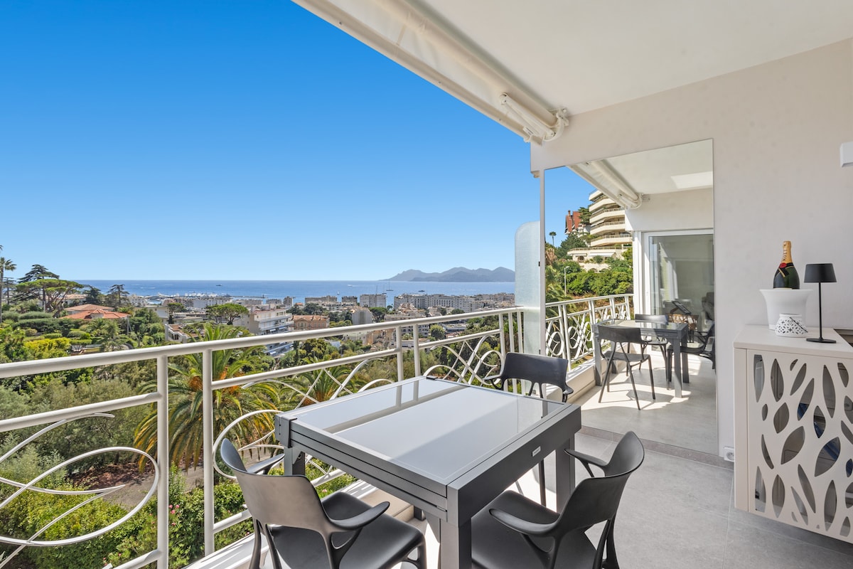 Experience the best of the French Riviera in this beautiful apartment located on the famous La Croisette in Cannes. Panoramic and exceptional view over the entire Bay of Cannes, the beaches, and the gardens of the prestigious Résidence du Grand Hôtel. The balcony is the best place to watch the fireworks in the summer. Step across the road to the beach and the restaurants. Walking distance to the Palais des Festivals, the Hotel Carlton, the luxury boutiques and the shops of the Rue d'Antibes.
