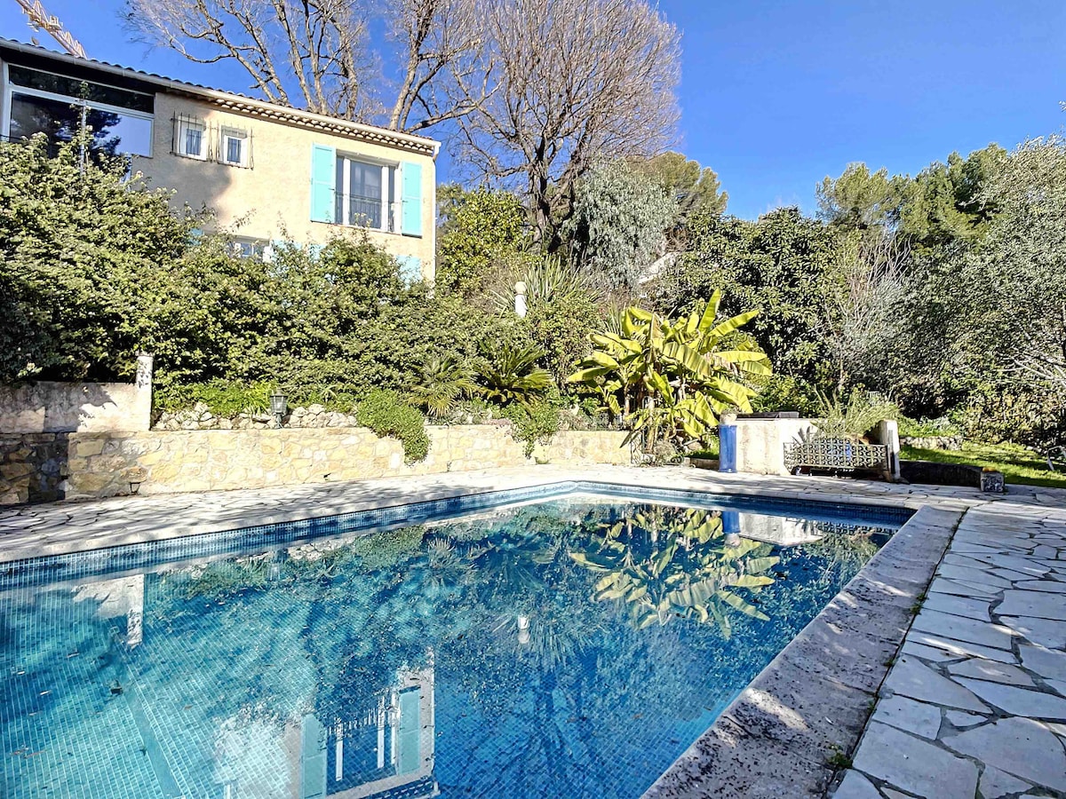 Petit STUDIO très bien équipée avec entrée et parking privé dans une grande Propriété avec piscine et jacuzzi chauffés du 10 avril au 30 octobre . La piscine extérieur et jacuzzi ainsi que le jardin sont partagés mais assez grand pour profiter chacun son espace de tranquillité . Je vis dans la bastide principale . Un Havre de Paix entouré d oliviers centenaires . A 35 minutes de l aéroport de Nice et divers villages provençaux et 14km de Cannes . Tele grand écran /abonnement Netflix