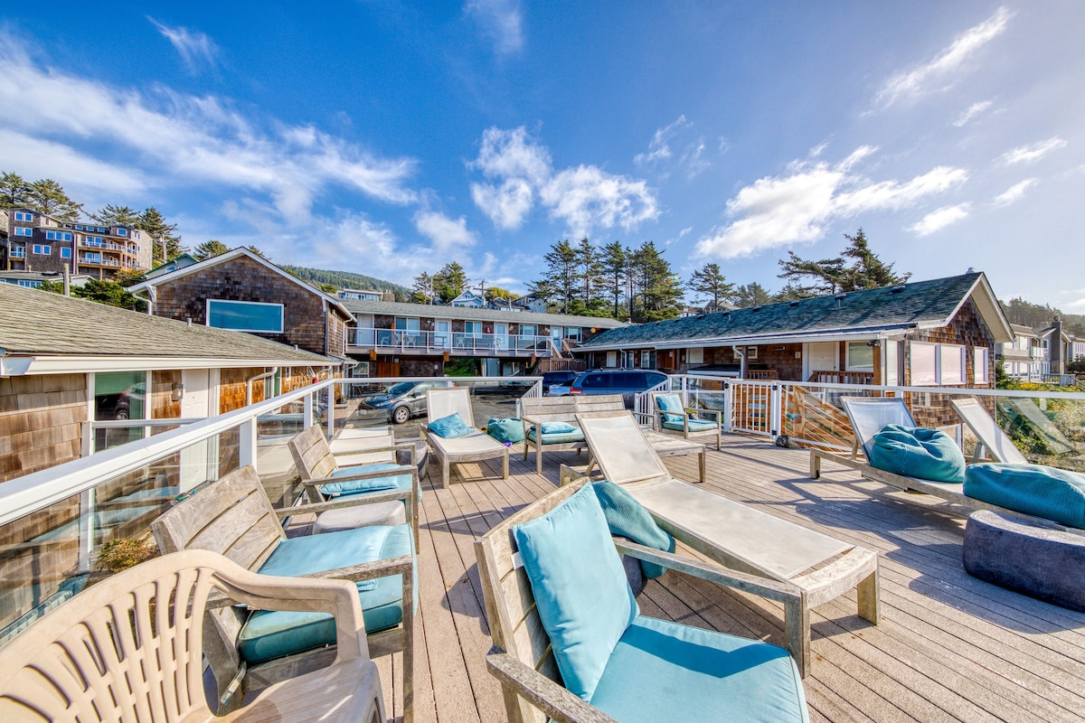 Stunningly situated 50 steps across the dune grass from the golden sand of Rockaway Beach, this oceanfront home provides a truly spectacular setting for your next escape to the Oregon Coast. In this gorgeous location just north of downtown, you'll be able to watch the ocean waves roll gently in and out from the elevated deck, enjoy the fully appointed and recently updated kitchen, and relax in the open living and dining space with a wall of picture windows out to the ocean.