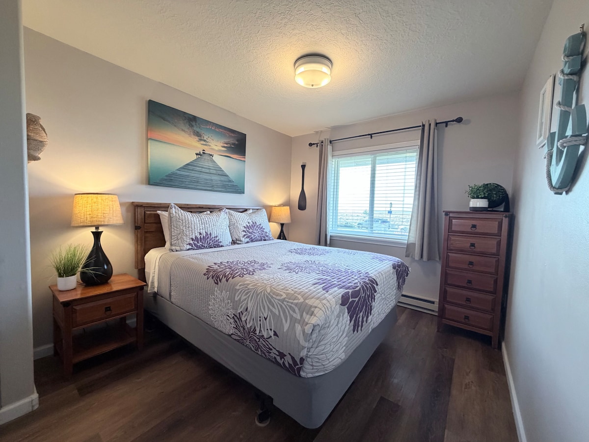 Puffin Place is a 320 sqft studio located two streets from the beach. Walking distance to Fresh Foods grocery and multiple restaurants. Vaulted ceilings, large windows, and neutral tones make the space the perfect combination of bright and cozy. On chilly days, curl up next to the gas fireplace and stream your favorite shows. The queen bed sleeps two guests comfortably. The sofa twin beds are best suited to youngsters. The condo is a third floor unit with stairs, no elevator.
