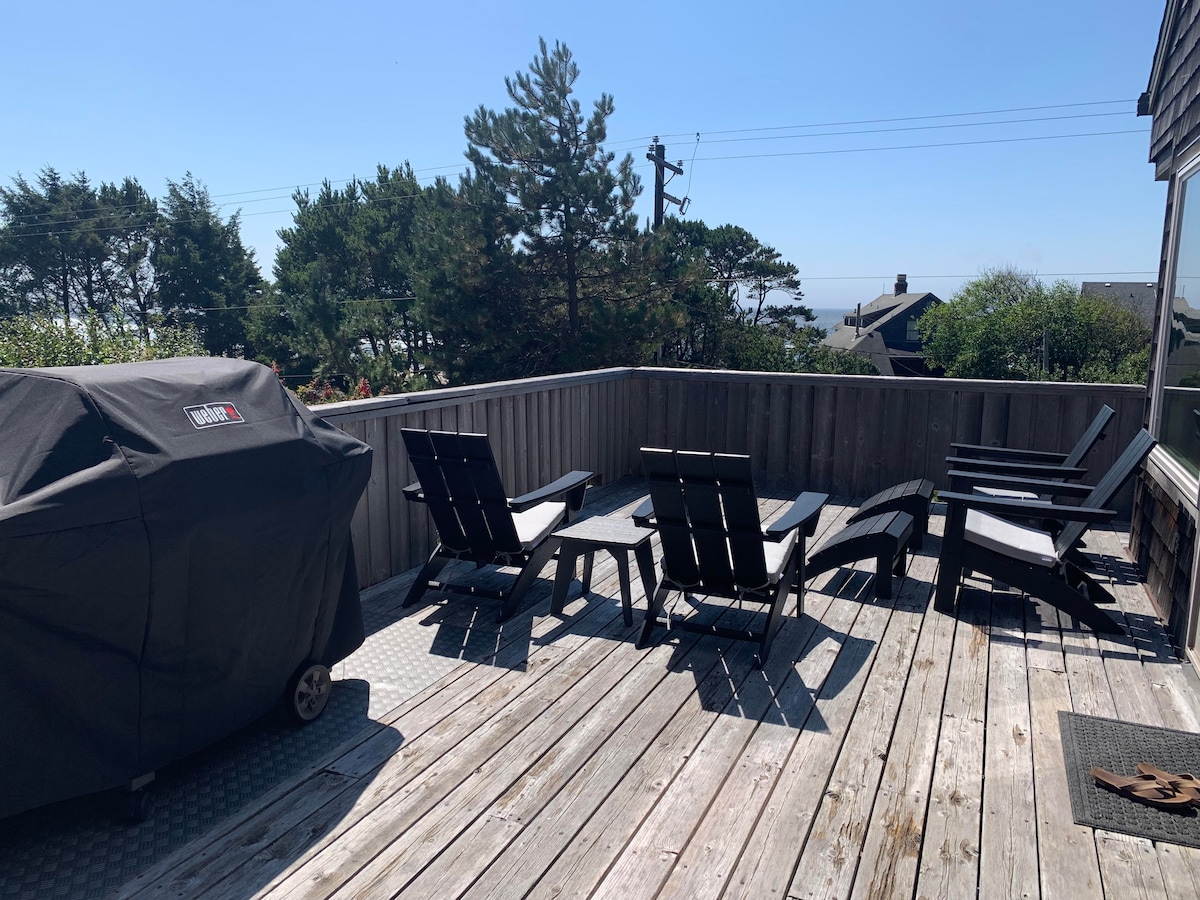 Ocean Front. Honey Park the Car!! Walk to the beach, eateries, shopping, breweries, art galleries, Haystack Rock! Dogs Ok:) and BBQ Grill! * Located on the second level of a duplex, there is a wraparound deck that allows you to enjoy your cup of coffee, or BBQ outdoors while watching the tide roll in and out. * Family & Dog Friendly (2 dogs maximum) * Wi-fi* Cable * Fireplace * steps to sand