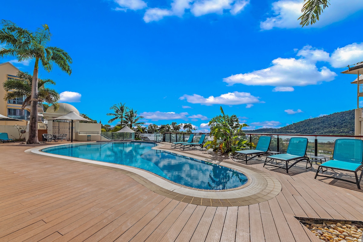 Waters Edge Resort, located at 4 Golden Orchid Drive. Third floor unit over looking the main pools. 2 bedroom 2 bathrooms. Full Kitchen and large outdoor veranda. Fully self contained, walking distance to Lagoon and Main Street of Airlie Beach 3 pools, hot spa and gym. Fully Air-conditioned. Best location and stunning sea views. Unit can sleep up to 5 guests