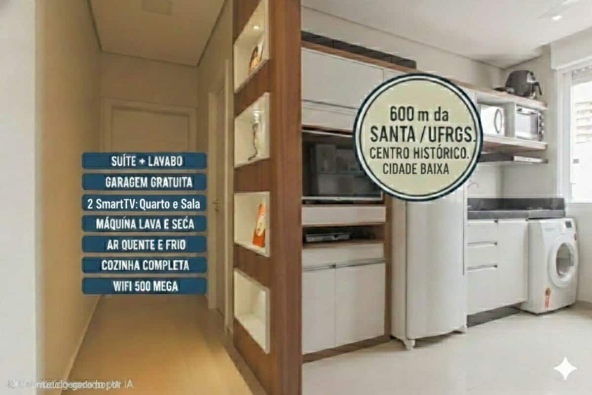 APTO C/ SUÍTE, LAVABO E GARAGEM A um passo do Centro Histórico, Cidade Baixa, UFRGS e Santa Casa (600m). Próximo a Tribunais e órgãos públicos. Fácil acesso a shoppings (1km), rodoviária (2km) e aeroporto (8km). Total conforto com Wi-Fi 100 Mega, Smart TV, Ar-Condicionado e Garagem segura inclusa (a 50m). Perfeito para turismo, trabalho ou saúde.