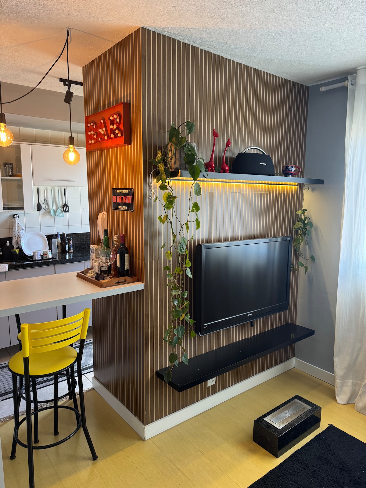 The Berlim apartment, located in the modern Skyline condominium in Porto Alegre, combines contemporary design and functionality. With an integrated layout, it features a fully equipped kitchen, workspace, double bed, and cozy sofa. The decor blends wood tones and gray for a sophisticated, welcoming feel — perfect for guests seeking comfort, convenience, and easy access to the city’s main areas.