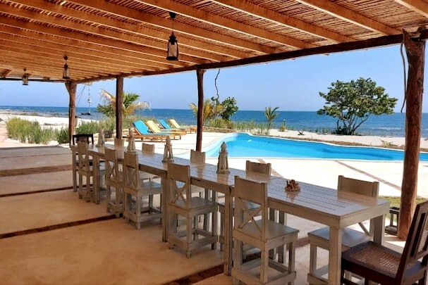 Estamos en un condominio privado con solo 15 casas frente a la playa.Salimos directamente a la arena donde hay una ramada con poltronas y una zona de fogata.Los dormitorios son totalmente independientes.El principal está en segundo piso y los otros 3 en bungallows alrededor de las zonas comunes y piscina.Hay dos terrazas y una sala interior lo que ofrece bastante espacio social.Todos los dormitorios y terrazas tienen vista al mar.Mar tibio,playa larga,lindos atardeceres y comida deliciosa