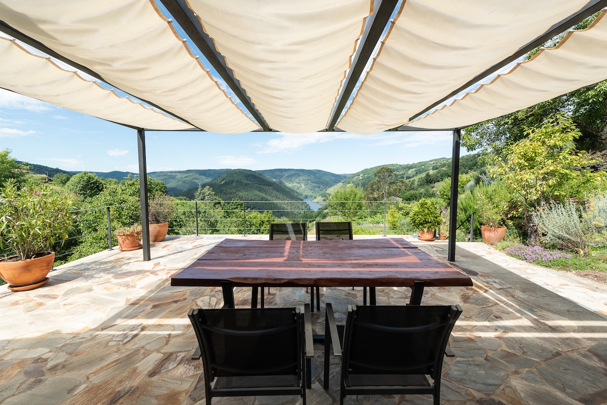 Welcome to our luxurious casa rural in the Ribeira Sacra! Enjoy the impressive views of the Miño River Canyons and Cabo do Mundo from our charming rural house. Surrounded by lush vineyards and a garden inspired by naturalism, our property offers a relaxing and unforgettable experience. Located just 300 meters from a beautiful winery and 1-2 km from the Cabo do Mundo viewpoint and A Cova beach, we promise you that you will not regret visiting us. Follow us on IG: @casaboutiqueparadise