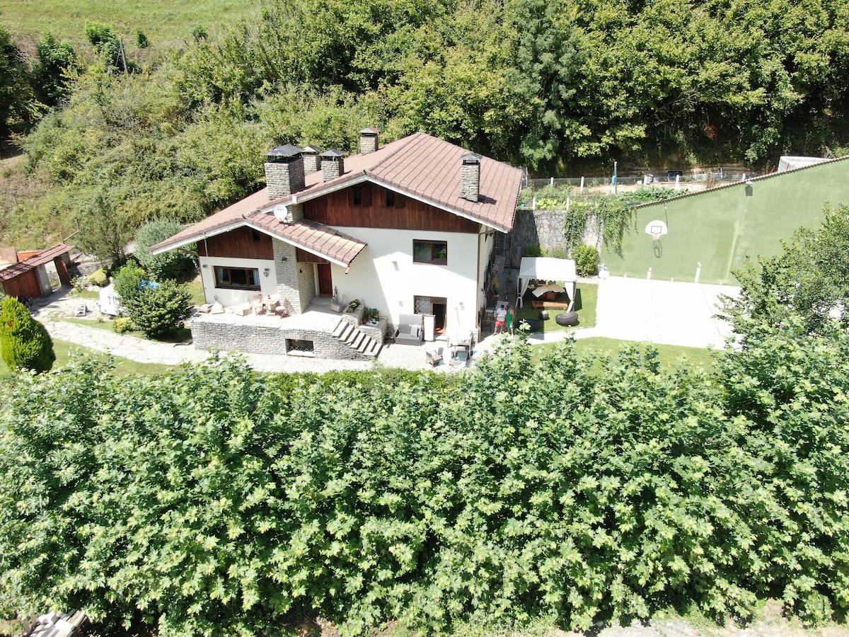 Preciosa casa rural a los pies del parque natural de Armañon. Consta de frontón propio de 25 mt, barbacoa, zonas ajardinadas con cenador, sala multiusos, txoko con cocina. Punto de partida para senderismo y mtt. Escuela de escalada a 10 minutos. Playa a 15 minutos, surfeables (paddle, surf, wakeboard) Posibilidad de organizar: Rutas a caballo Salidas en barco a pescar deportes acuaticos Via ferrata Espeleologia