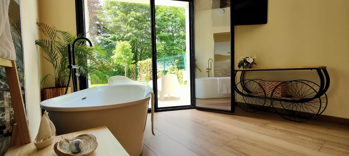 带按摩浴缸、壁炉和水疗中心通道的单间公寓