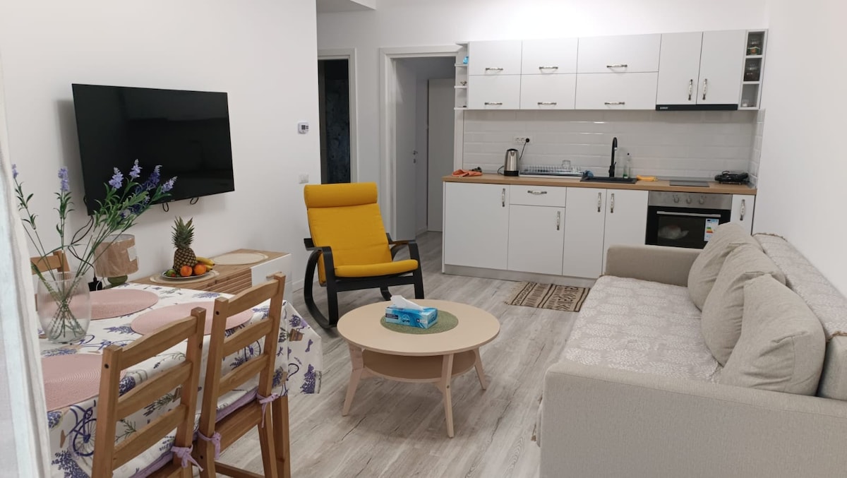 🏡 Modern apartment, perfect for up to 4 guests 🛏️ Separate bedroom + sofa bed in the living room 🍳 Fully equipped kitchen 🌳 Private garden with stunning view 🚗 Free parking ❄️ Air conditioning 📶 Fast WiFi 🏊🏼 Spa zone - additional cost ❤️ Cozy home-away-from-home vibe – always happy to welcome you back! Book your stay now and experience comfort, privacy and all the amenities you need for a memorable visit. We are ready to make your trip easy and enjoyable - just bring your suitcase!