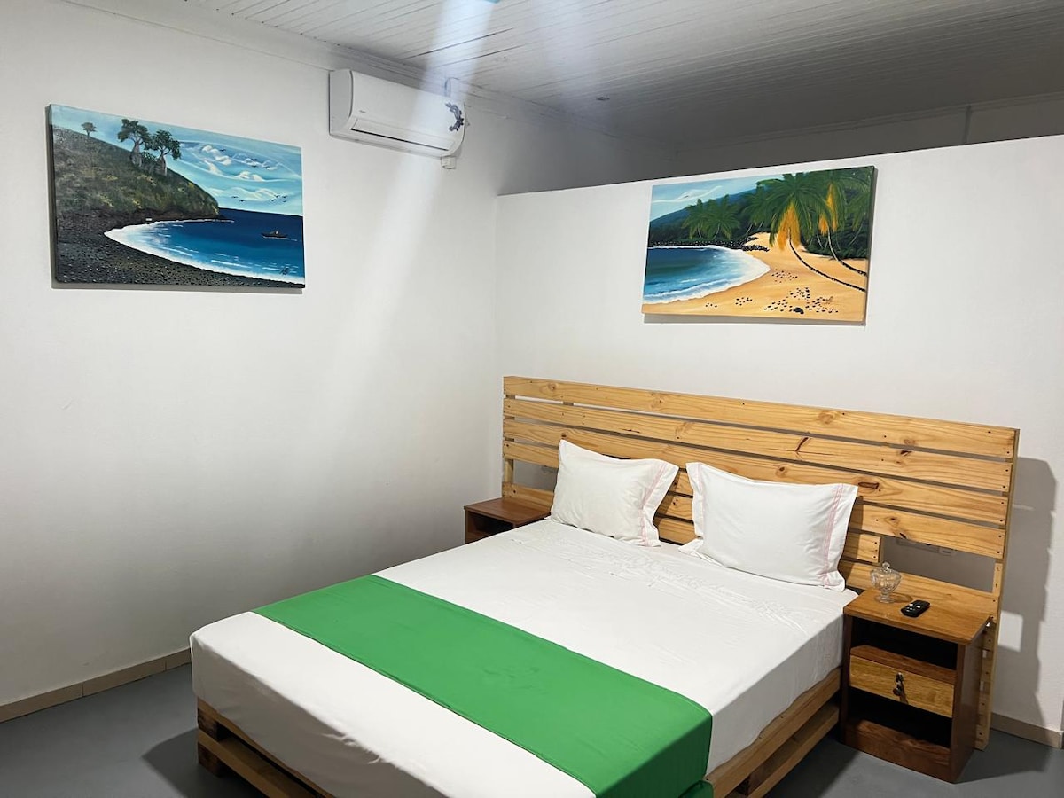 Hut with all the comforts in the middle of nature. Located in the best area of São Tomé, Santana, 15 min from the city and 25 min from the Airport, away from the hustle. This cabin is ideal for having a holiday close to nature, listening to the sound of animals and the sea flooded by greenery, close to the best beaches in São Tomé. This typical chalet has all the amenities such as fans, mosquito nets, air conditioning and wi-fi to enjoy your vacation on the magic island to the fullest