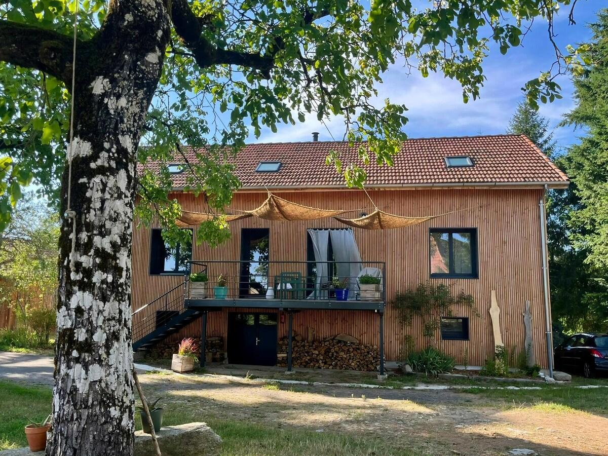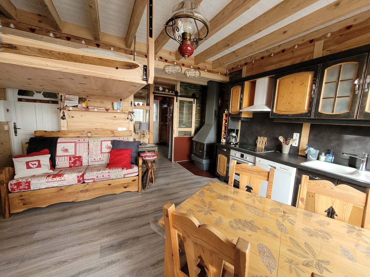 “Chalet 63” 木柴炉和景观的舒适小屋