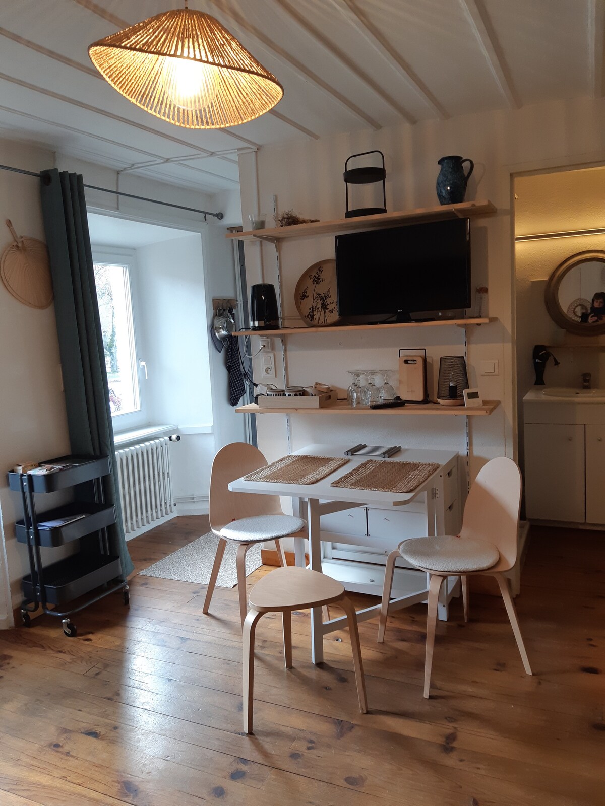 Hello, If you have clicked, you are already almost conquered. This hilltop chalet has its own originality, with an atypical interior layout. There is a bit of the unusual combined with real comfort. It is designed for 2 people. Located in the heart of the volcanoes between the Cantal range, the Puy de Sancy range and the Dômes d'Auvergne which will allow you to enjoy a lot of activities. Is possible; rest/walking/discovery/teleworking