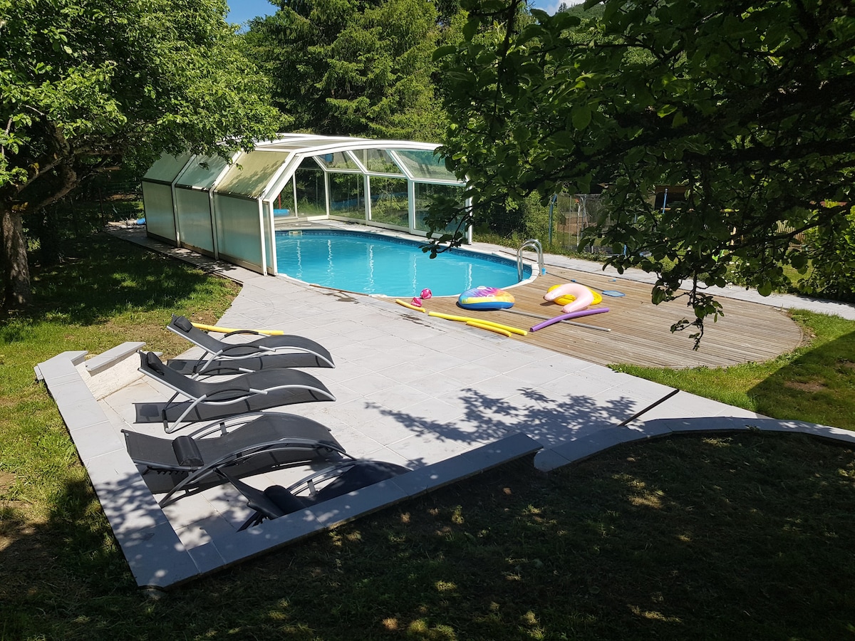Des vacances reposantes, au grand air, dans un environnement préservé , voici Estelou Cosy, belle maison traditionnelle perchée dans le Cantal, au pied des estives, avec son jardin luxuriant et sa piscine privée. Cette modeste demeure a été totalement rénovée sur ses 2 niveaux, dans un esprit cocooning, du jardin ( avec espace plancha/apéro abrité en bord de piscine) jusqu’aux 3 chambres mansardées. Animaux acceptés / Wifi/piscine (juin à septembre), petit boulodrome, etc.. Dépêchez vous..😜