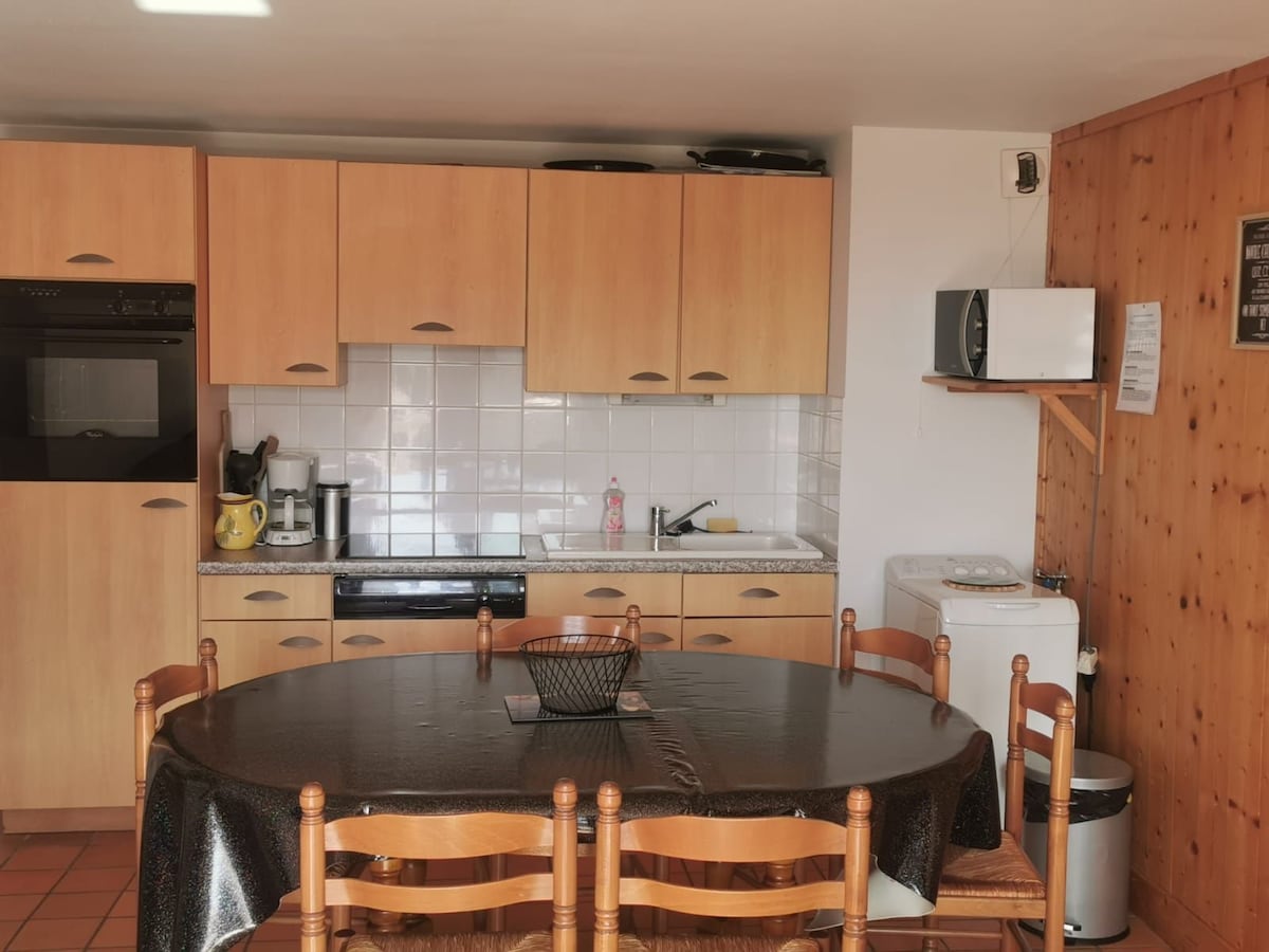 Appartement en location saisonnière idéal pour les grandes familles,les groupes d amis ,les motards.Un garage mis à disposition pour les motos ... Spacieux avec ces 5 chambres avec ses 10 couchages. Comprends aussi 1 canapé convertible 1 chauffeuse double.simple ainsi qu un lit bébé Soit possibilité de 12couchages. Situé a 10mn de la station du Lioran A partir de février une navette est disponible pour monter à la station du lioran Dans un village au dessus d un multi rural.