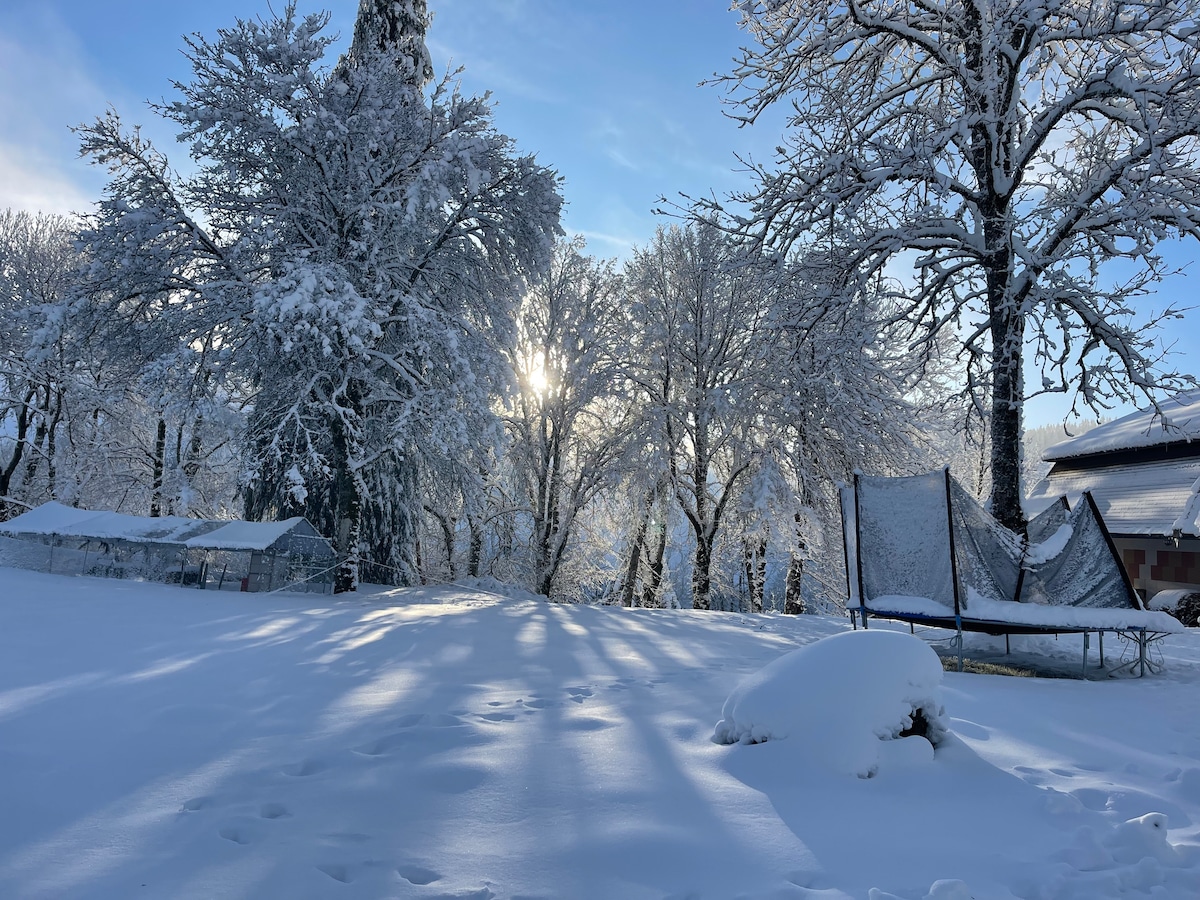 Idéal groupe jusque 15 personnes ,(30 personnes de mai à septembre) .premier bâtiment Salle de 50 m2 avec cuisine équipée, voir liste équipement. arboré avec table et barbecue ,chambres de 2 à 5 personnes sur 1 deuxième bâtiment . Ancien centre de vacances en cour de réhabilitation mais fonctionnel. vacance été hiver ,Anniversaire, copains , motard etc .vous y trouverez un lieu agréable. Possibilité bâtiment supplémentaire de 15 personnes de mai à septembre. Salle et chambres privatisées.