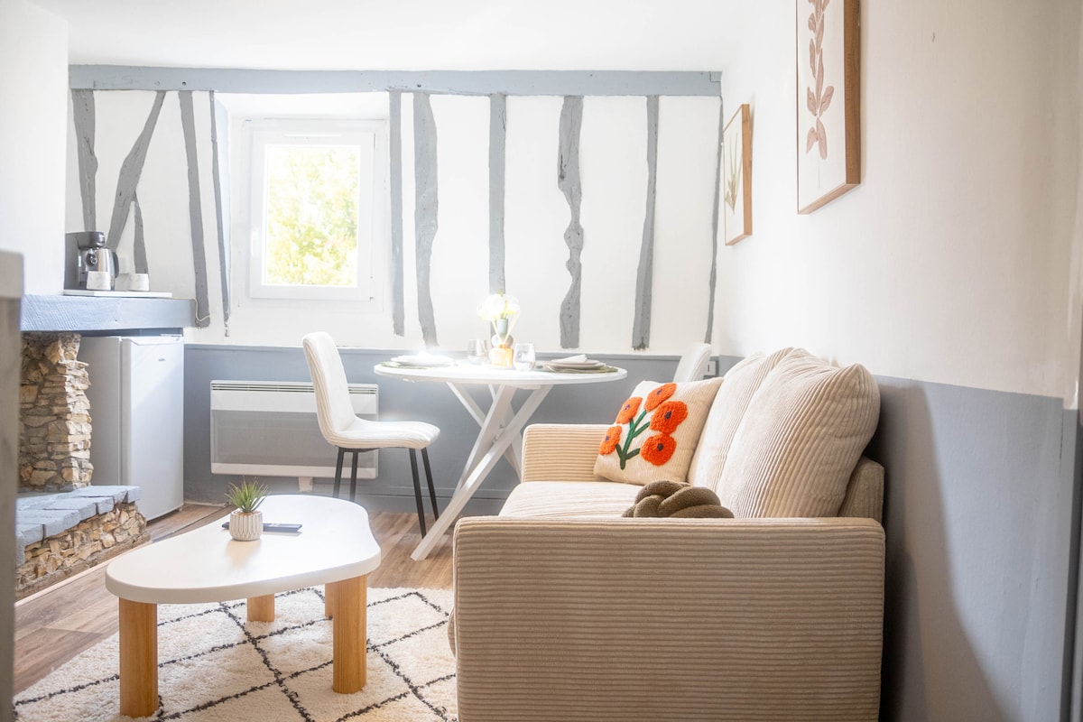No cleaning fees 🧹! Welcome to this charming, newly renovated, ground-floor studio apartment overlooking a courtyard. Quiet and tastefully decorated, it's ideally located between the train station and Rouen city center. A large private terrace allows you to enjoy your meals outdoors. Equipped with all the necessary comforts, it can accommodate two guests. This accommodation is rated 1 star ⭐️ by the certified organization ADTER.