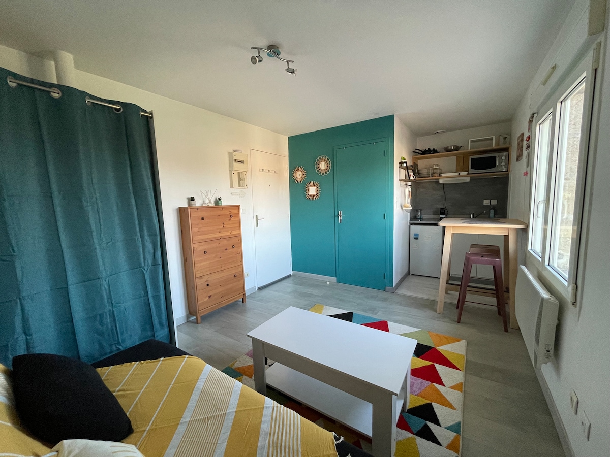 Studio indépendant situé dans notre maison, proche du centre et disponible du dimanche soir au vendredi matin, idéal étudiant en alternance ou travailleur en déplacement. Ce studio de 15m2, entièrement rénové est parfaitement équipé avec lit 140 cm neuf, salle d'eau ouverte (douche et WC), coin cuisine. Vous apprécierez notre logement pour son lit confortable et son indépendance. /!\ Logement STRICTEMENT non-fumeur, pas d'autorisation de fumer devant la maison.