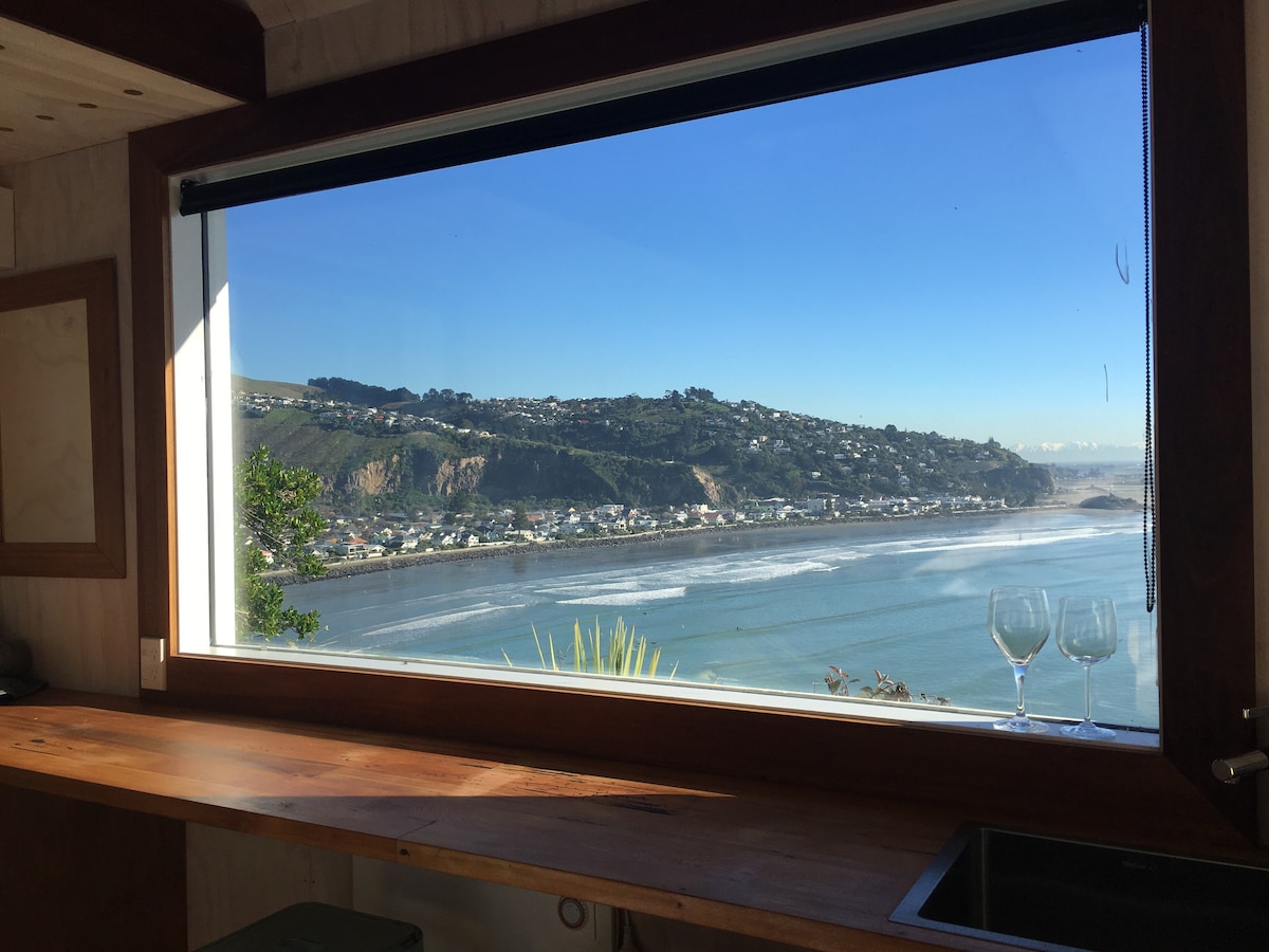 Tiny house located in Christchurch's premium holiday destination. Stunning expansive views over Sumner beach, across the ocean to the Alps. Newly built in a classic style, The Hut is a little place with timeless charm. Private, sunny and sheltered, in this peaceful location you will fall asleep to the sound of the ocean and wake up to bird song. Access to the Hut is a few minutes up a walking track. Close to the beach and esplanade. Surfing, biking, swimming, walking tracks, cafes all on hand.