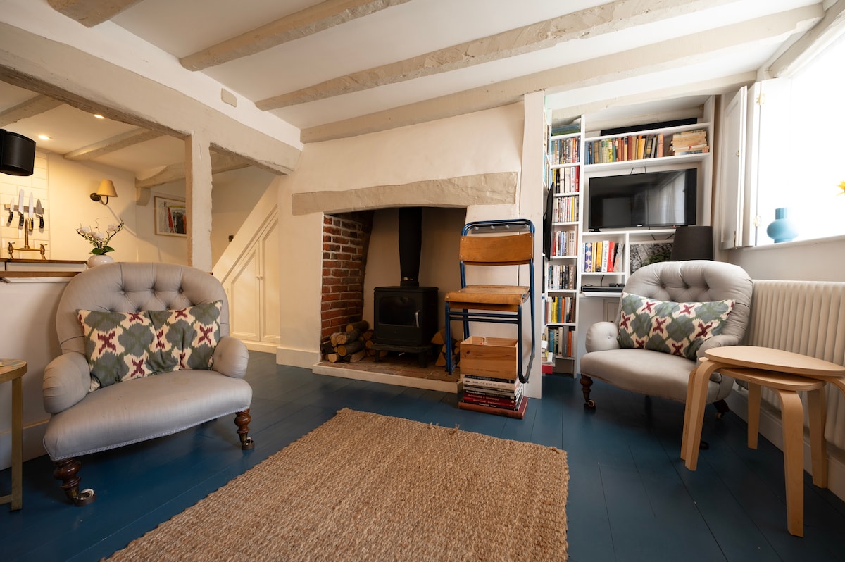 A beautiful 2 bedroom cottage in the most wonderful location - steps away from the beach and a few minutes walk to the centre of Whitstable. This fisherman’s cottage dates back to 1810, is full of period charm, and sympathetically decorated with antique, comfortable furniture. The cottage has a mature garden with side access, and is set down several steps meaning it feels nice and private. The cottage has steep stairs and some low ceilings.